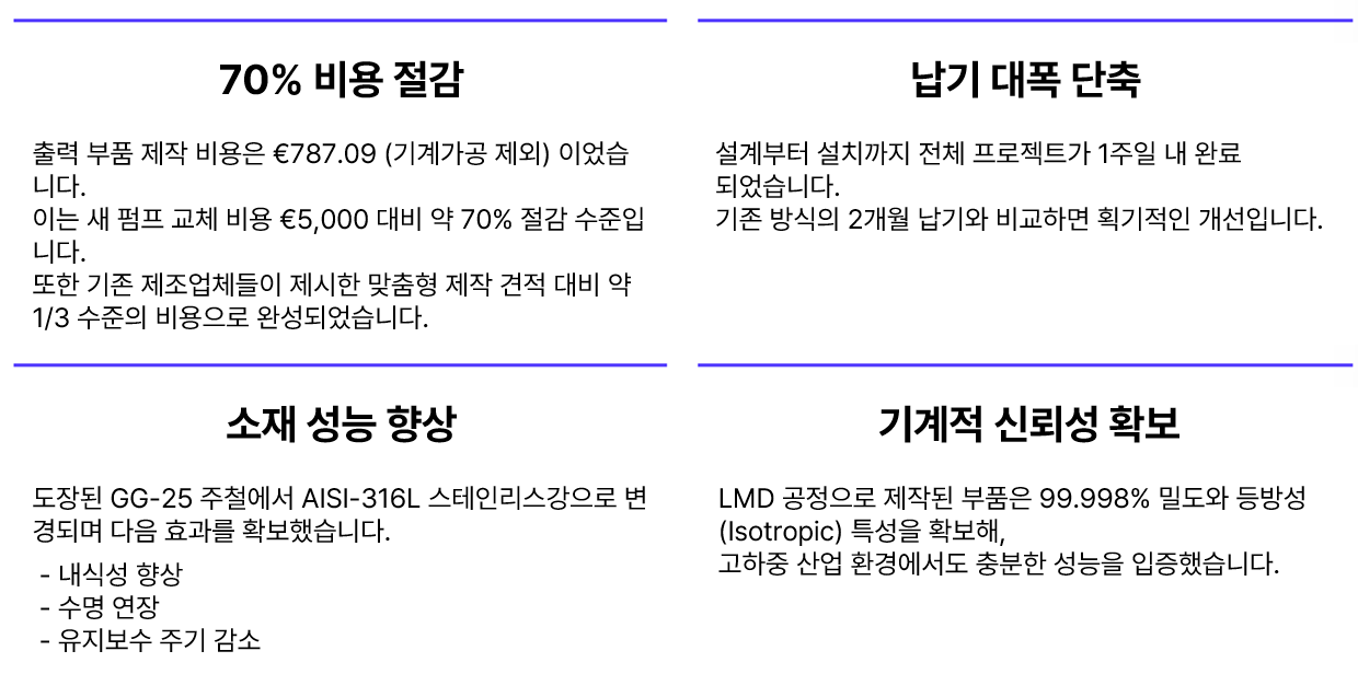 We provide integrated services ranging from design to precision post-processing using Meltio's Laser Metal Deposition (LMD) technology, and in this project, we successfully restored a core centrifugal pump in collaboration with the Bozzetto Group.
