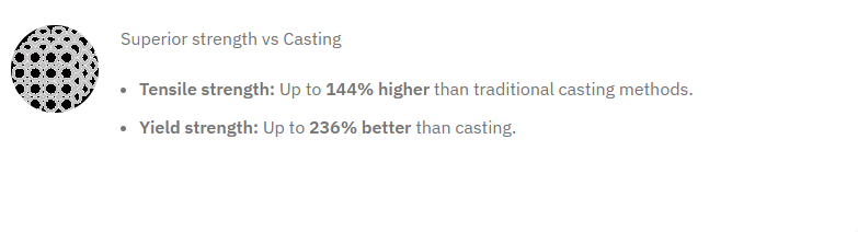 이는 단조 수준의 품질과 3D프린팅의 형상 자유도를 동시에 제공하는 생산 기술입니다.